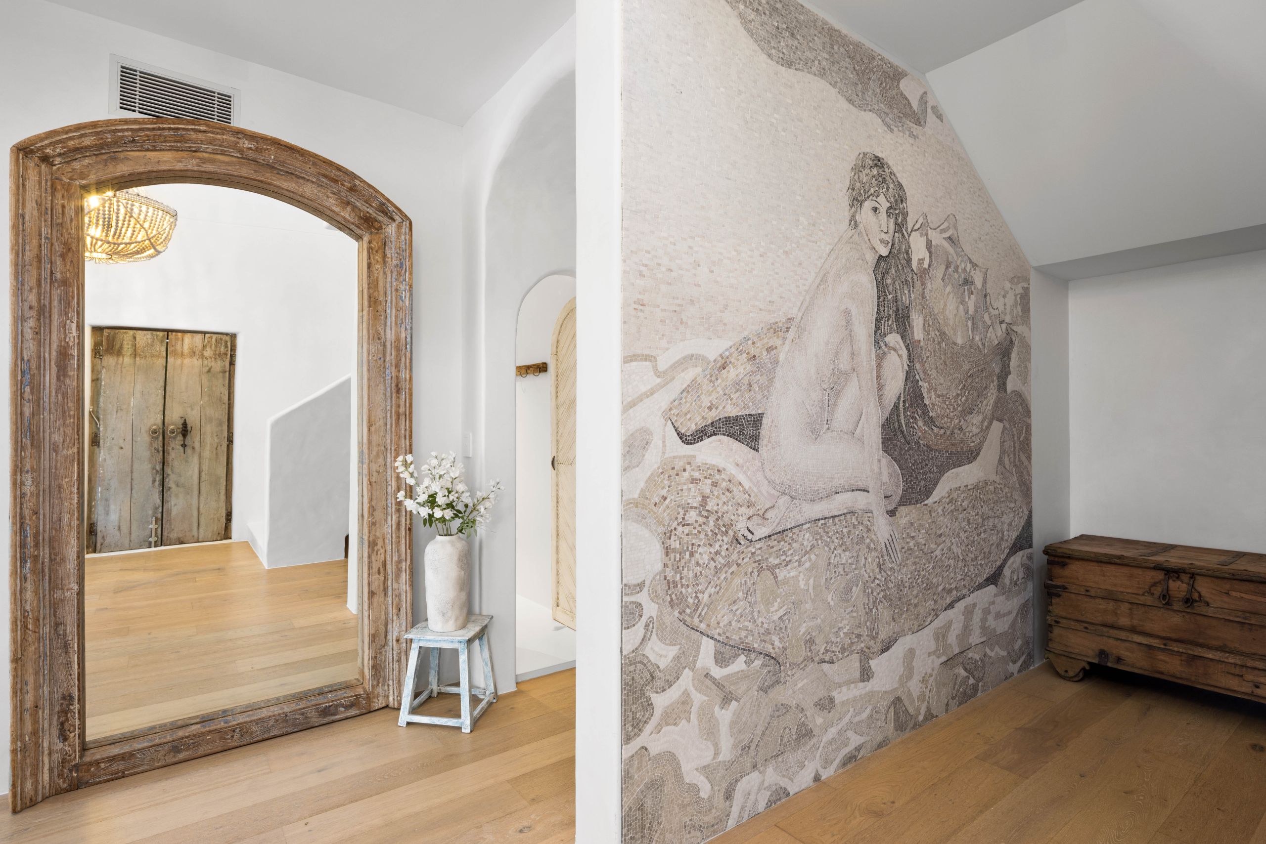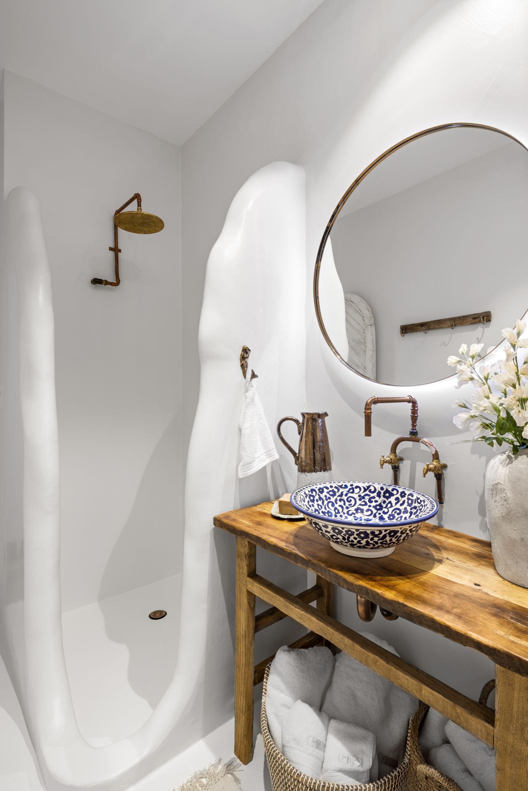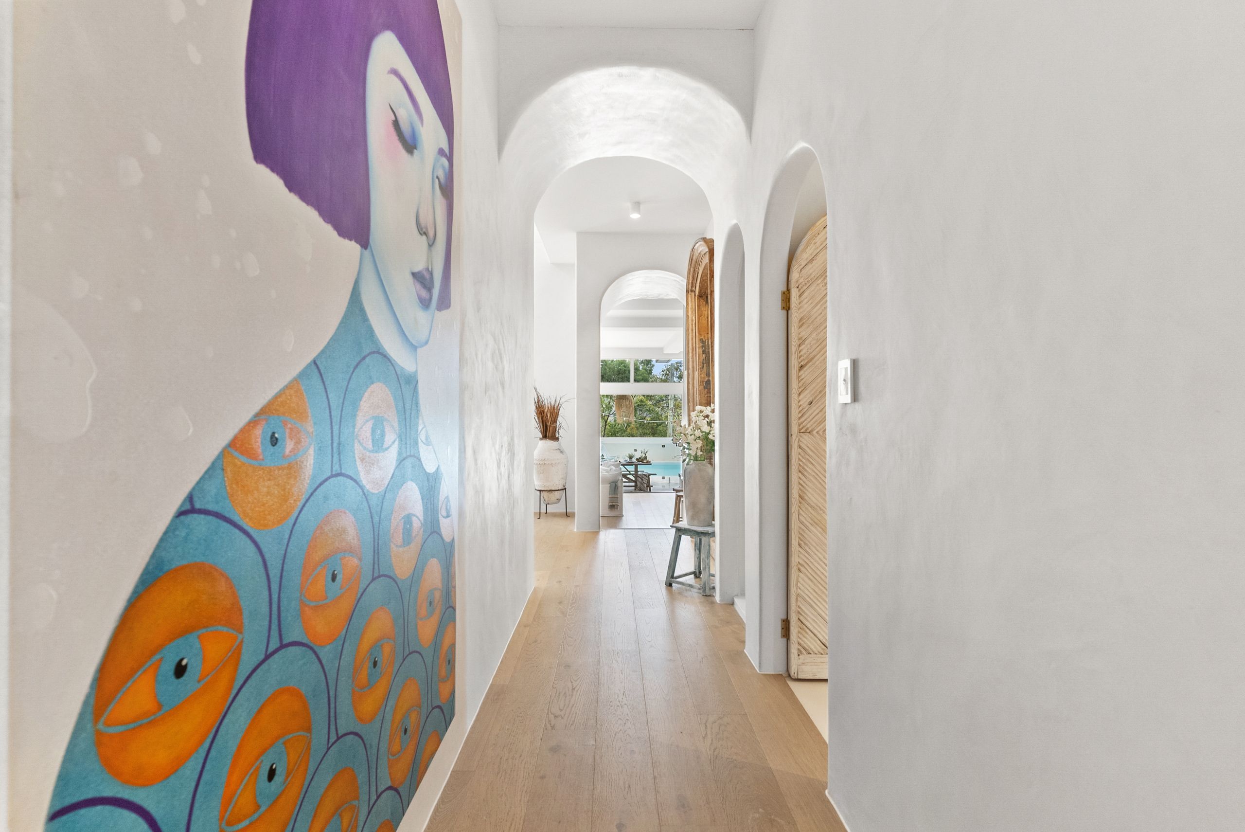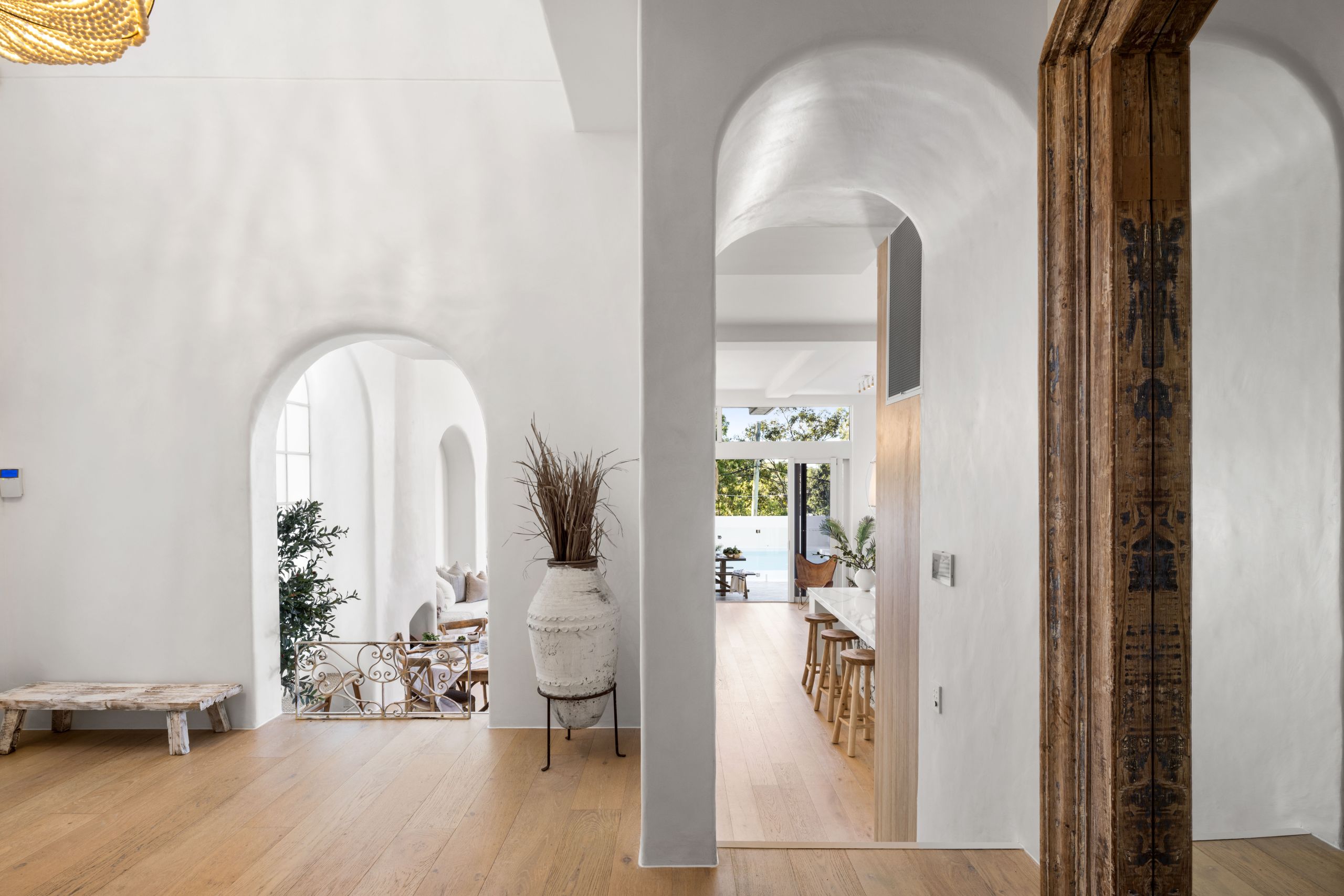 Designed around the philosophy of ‘Perfection Within Imperfection’, every curve, arch and surface carries intention. There are no straight lines here – only soft sculpted forms that flow with texture and soul. A gentle patina moves through the house, its layers of tone and depth revealing a story of hand and time. Imported Italian lime render breathes through the walls, purifying the air, while grand chandeliers cascade from extreme high ceilings throughout, illuminating hand laid mosaics that whisper craftsmanship and spirit.