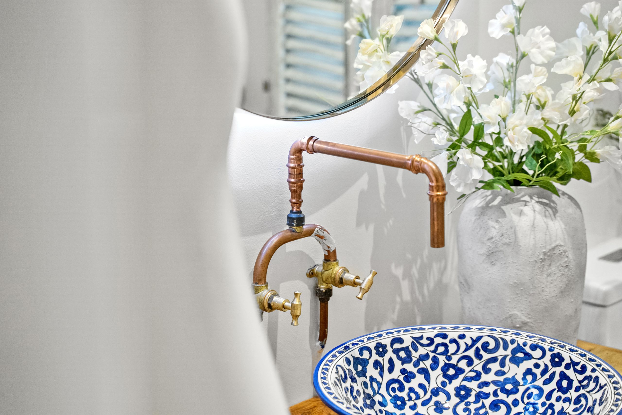 Every door tells a story – antiques 150 to 200 years old sourced from Cairo and Rajasthan, with a haveli carved main door standing as a statement of artistry and welcome. An oversized antique cast iron window repurposed from a historic Sydney warehouse adds old world romance to the interior. At the entrance, a three-metre commissioned mosaic greets guests in the foyer – a stunning centrepiece that sets the tone for what awaits within.